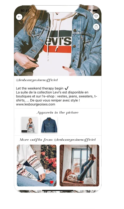 And yes, there's more! Because you discover new looks, you can literraly navigate from apparels to apparels and discover new exclusive items that compose the outfits of your favorite influencers!