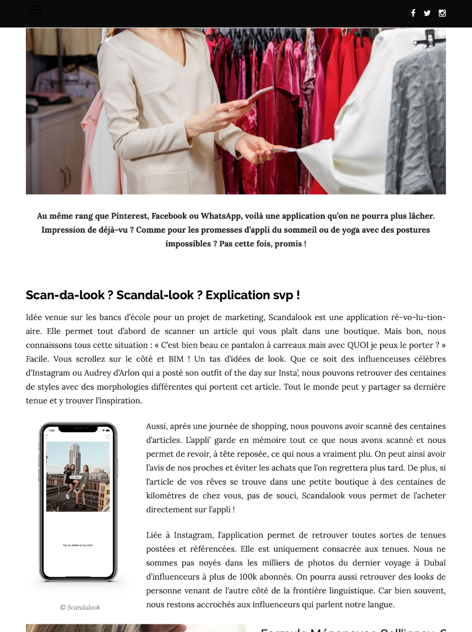 The SCANDALOOK app will allow everyone to scan barcode of apparels in store and to find back every influencers wearing that exact same clothes